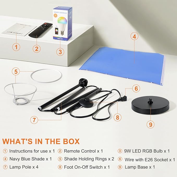 - 【Easy installation 】The tall floor lamp is easy to install—no extra tools are needed. Just follow the instructions to screw in all the parts, and you'll be ready to enjoy customizable lighting! Ideal for gifts.