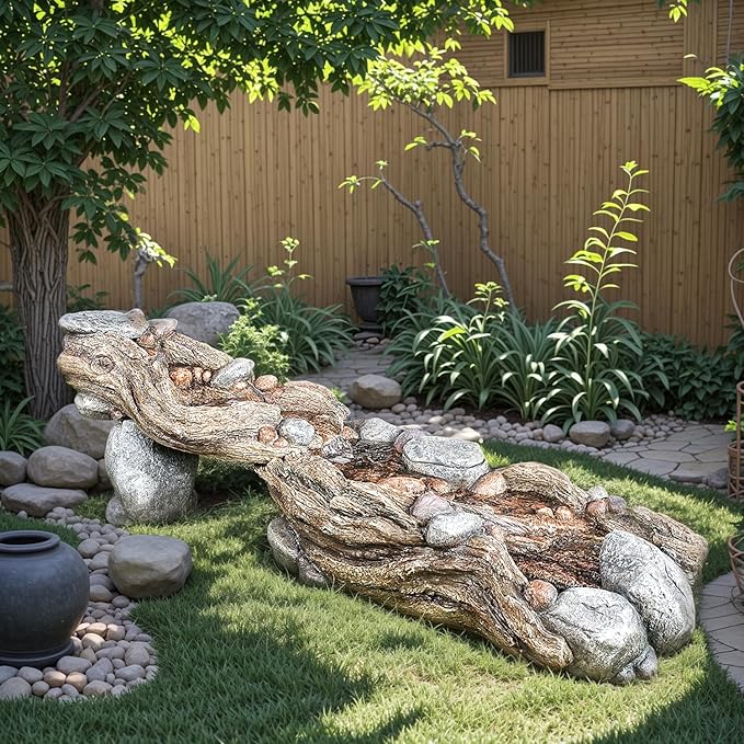 - Weather-Resistant Design: Constructed from resin with a realistic wooden appearance, this outdoor garden fountain is waterproof, rust-resistant, and built to last, adding an artistic flair to your outdoor environment.