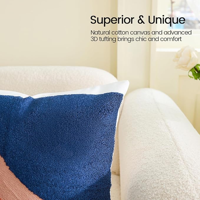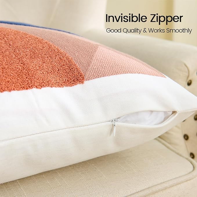 - ⭐【FABRIC AND SIZE】The front of this boho couch pillow cover is made of 100% polyester + 10% viscose,the backside is made of 100% cotton.Measures 18x18 inches.Exquisite workmanship enables tufting part dense soft and aesthetic.The 3D effect with the tufting technic makes these abstract pillow covers so distinctive