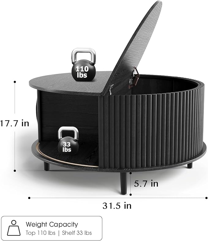 - Stylish and Practical: The round coffee table features lift top design,allowing you to work,write or dine comfortably on the sofa.Its mid-century modern style adds a retro feel to any space