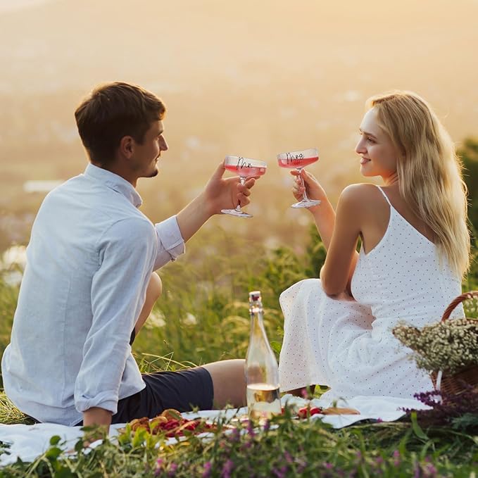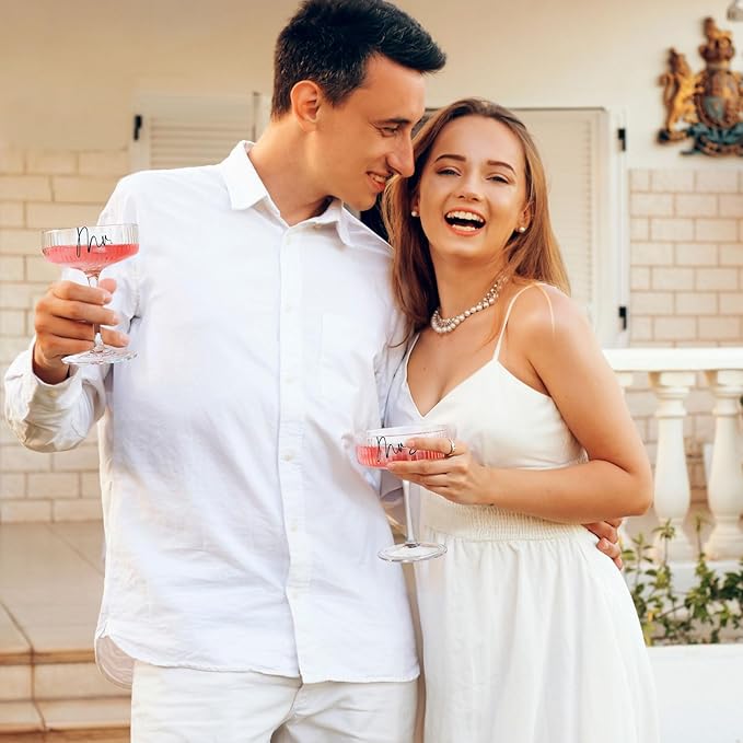 - Romantic "Mrs & Mr" Martini Couple Glasses - Perfect Wedding Gifts for Bride & Groom: Elevate your love story with these bride and groom champagne flutes featuring elegant "Mrs & Mr" engravings. The wedding glasses for bride and groom symbolize unity, ideal for wedding toasting flutes, anniversaries, or engagement gifts for couples. Set of 2 in a luxury gift box – no extra wrapping needed!