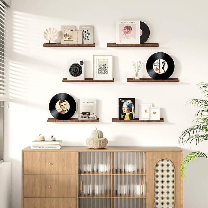 - 3.5" PICTURE LEDGE DESIGN: Ideal for displaying photos, artwork, or collectibles, these feature a thoughtful extremely narrow 3.5-inch width ledge design to prevent items from sliding forward, its mounting holes are spaced 16 inches apart for secure mounting to wall studs uncluttered aesthetic