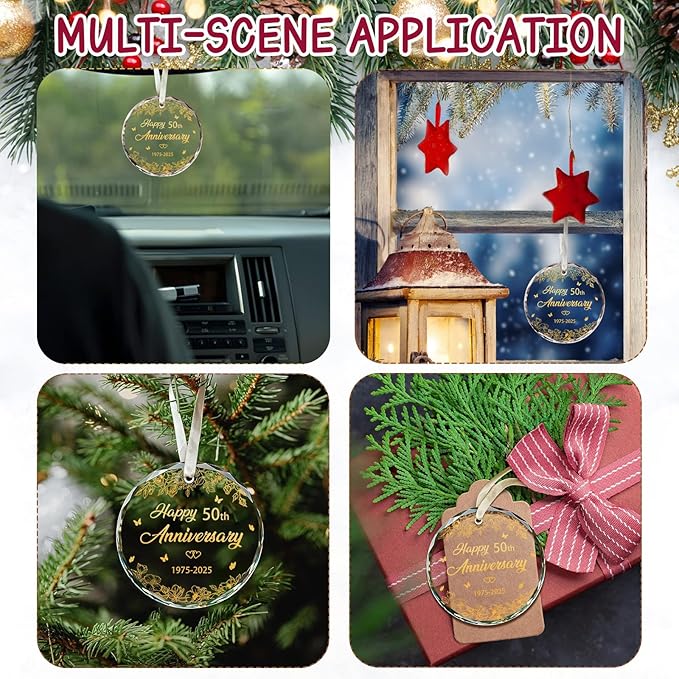 - Elegant Package: Elevate your anniversary party with our beautiful ornament set. This features a unique ornament, crafted with care. It arrives in a padded navy gift box, ideal for presenting or storing. A beige ribbon is already attached, allows for easy hanging from any angle, making it a delightful addition to your home's festive charm