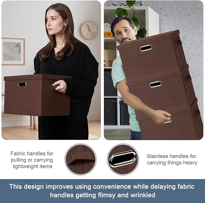 - ✅[Constant Use] Covered by thick textured cloth, our large lidded storage bins prevent daily wears and tears. They can keep dust and bugs out also, avoiding dirt and musty smell. You can use these decorative storage boxes with lids everyday or for long term storage.