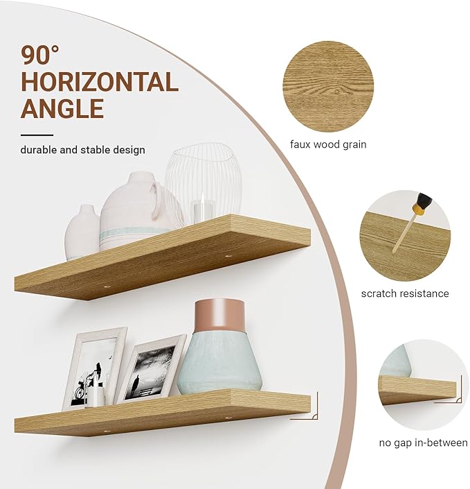 - 【Longer Design】Our pretty 32 inch wall shelves are 32"W x 9.3"D x 1.5"H.Our 32 floating shelves is longer than traditional designs and can hold more items.The white oak floating shelves optimize wall space,helping organize essentials without taking up floor space in your home.