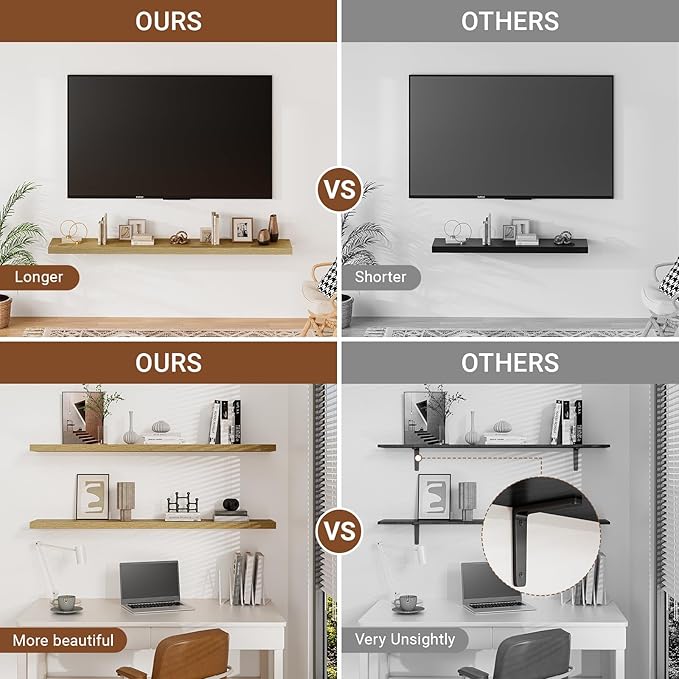 - 【Modern Rustic Look】Our 48 floating shelves for wall are made from durable engineered wood,which blends well with modern and rustic farmhouse wall decor alike.The 48 inch floating shelves is available in colors & sizes,perfect for storing books,plants,collectibles,etc..