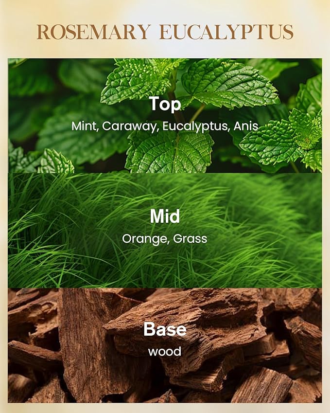 - Scent : eucalyptus, rosemary