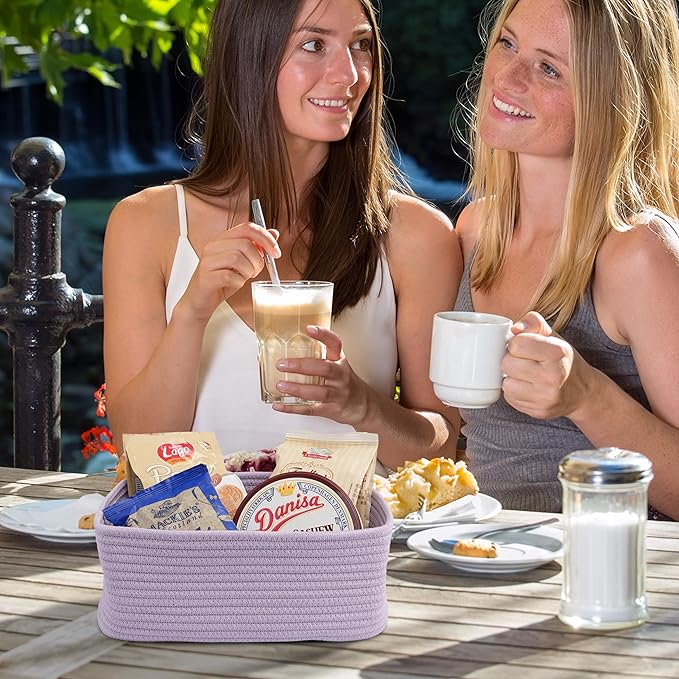 Small Woven Storage Baskets 13“X9”X5“ Decorative Rope Bins for Organizing Shelves, Closets, and Toys, Empty Gift Baskets, Cute Organizer Basket for Home and Office (purple, Large)