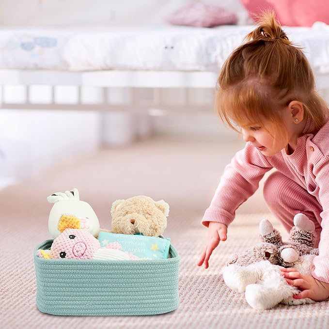 Small Woven Storage Baskets 13“X9”X5“ Decorative Rope Bins for Organizing Shelves, Closets, and Toys, Empty Gift Baskets, Cute Organizer Basket for Home and Office (green, Large)