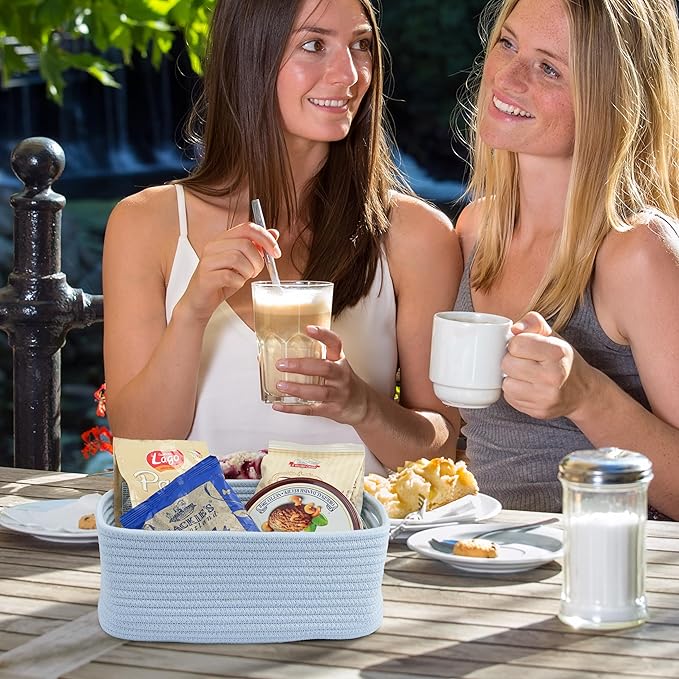 Small Woven Storage Baskets 13“X9”X5“ Decorative Rope Bins for Organizing Shelves, Closets, and Toys, Empty Gift Baskets, Cute Organizer Basket for Home and Office (blue, Large)