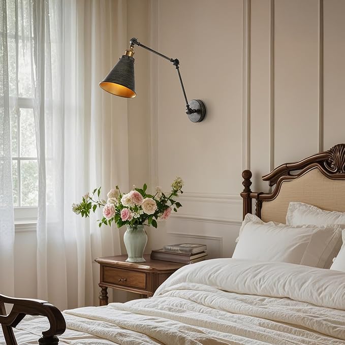 JONATHAN Y JYL7462D Rover 7" Classic Industrial Metal Adjustable Arm LED Wall Sconce, Rustic Dark Gray/Brass Gold for Bedroom, Bathroom, Vanity