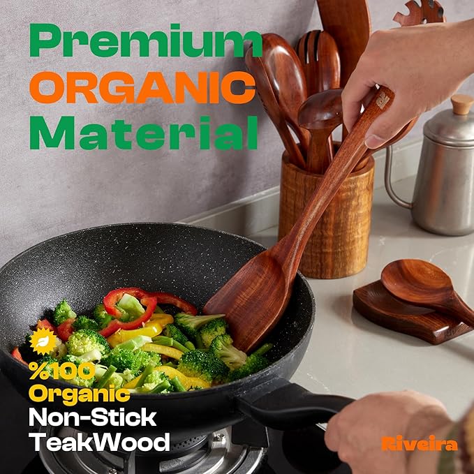 - Complete Cooking Essentials: This teak wooden utensil set includes 12 pieces such as wood spatula, spoons, and forks, making it versatile for stirring, flipping, mixing, and serving. With its eco-conscious design, this wood cooking utensils set caters to both professional chefs and home cooks.
