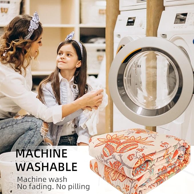 Boho Throw Blanket for Bed - 100% Pure Cotton Ultra Soft Rustic Quilt - Farmhouse Decor Bed Blankets, All Season Rustic Throw for Sofa Couch Chair(60''×80'', Floral)