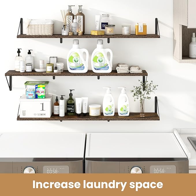 Heimlove 48 Inch Large Floating Bookshelves Set of 3,Rustic Brown Wood Wall Mounted Bookshelves,Heavy Duty Shelves for Living Room,Bedroom,Kitchen,Laundry Room Storage & Decor