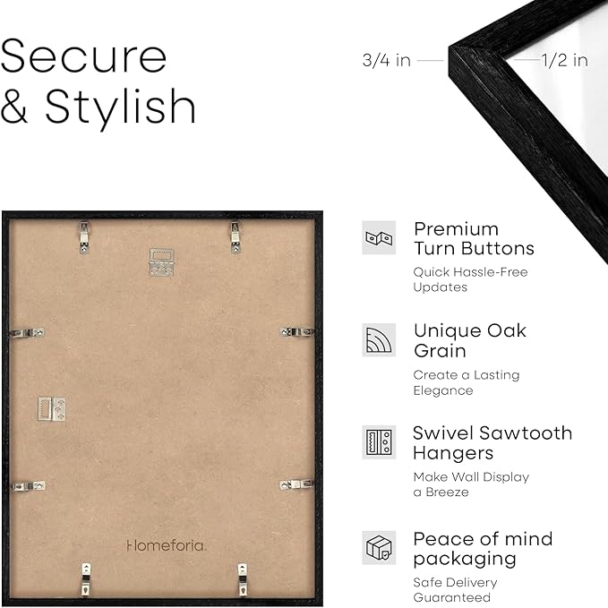 Homeforia 16x20 Diploma Black Wood Frame, High End Oak 16 x 20 Certificate Frames with Mat 14 x 17, 16by20 Document Frame Matted to 14by17, Wooden Graduation Frames, Tempered Glass, Wall Kit, Set of 1