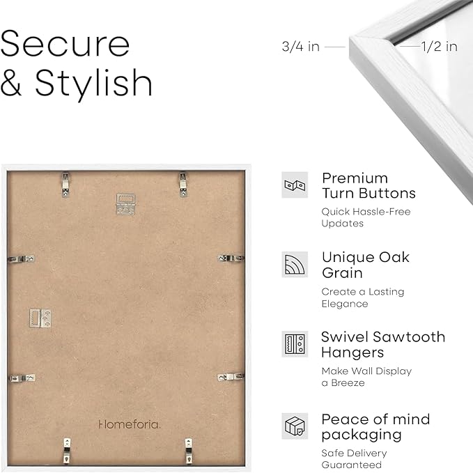 Homeforia 15x18 Diploma White Wood Frame, High End Oak 15 x 18 Certificate Frames with Mat 11 x 14, 15by15 Document Frame Matted to 11by14, Graduation Wooden Frames, Tempered Glass, Wall Kit, Set of 1