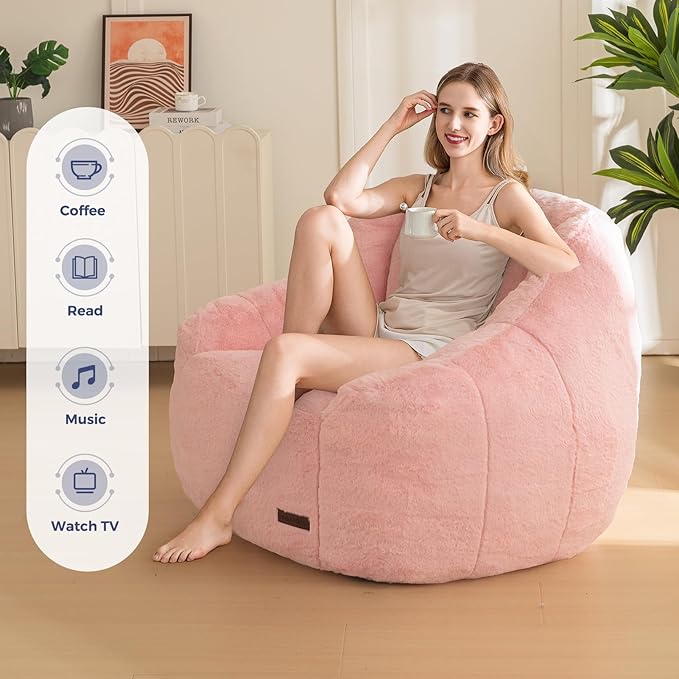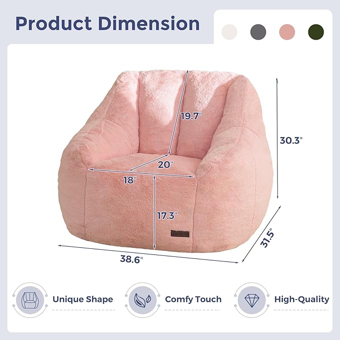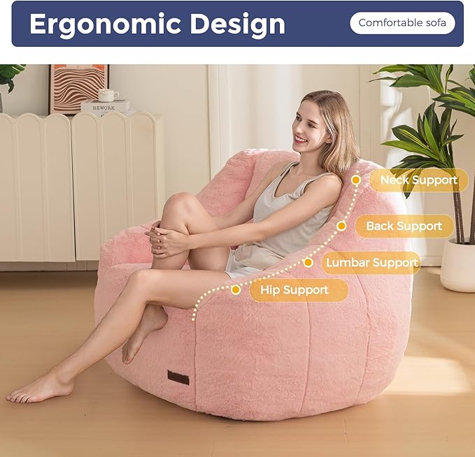 MAXYOYO Bean Bag Chair, Comfy Bean Bag Sofa with Back Support, Faux Fur Bean Bag Chair for Adults and Kids, Stuffed Floor Sofa for Living Room, Bedroom, Apartment, Pink