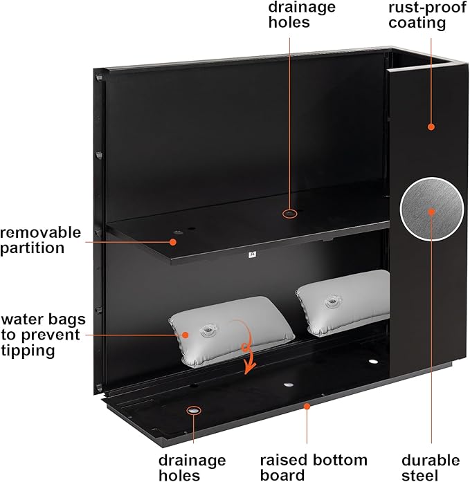 - Anti-Tipping Stability: Our flower box comes with two included water bags to enhance stability by adding weight to the base and can withstand a maximum tilting force of 30bf. Perfect for when using lightweight decorations