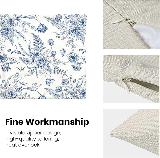 - 【Spring Pillow Covers】 Our Chinoiserie floral throw pillow covers 24x24 inch are made of excellent breathable polyester cotton fabric. The Blue and White floral decorative pillow covers is durable, soft and skin-friendly. The plant outdoor pillow covers adopt exquisite edging technology and four sides of our floral pillow covers are sewn firmly, which is not easy to open the line.