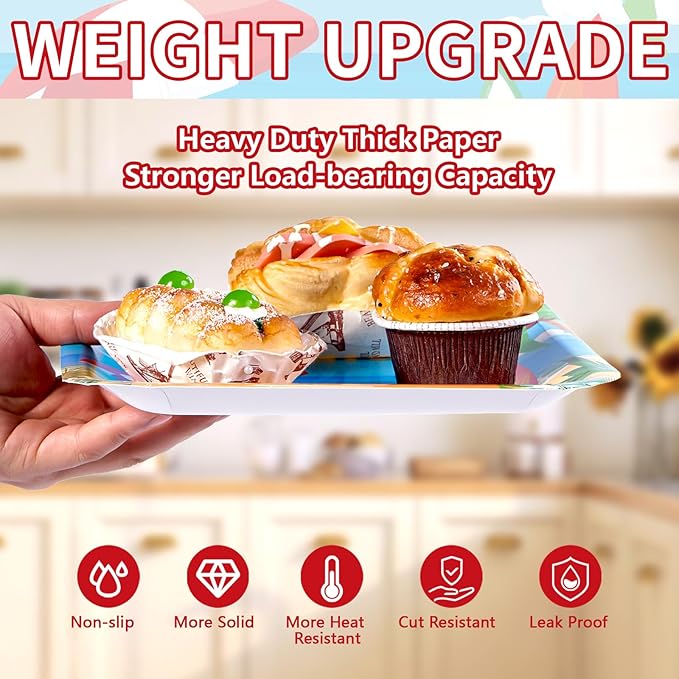 - Summer Beach Design: Each plate features a lively and colorful beach scene with surfboards, ocean waves, cute sun, cloud, coconut trees, tropical leaves, surfboard, sun umbrella and beach balls, with "Hello Summer" words. With these plates, you'll be transported straight to the beach after a day of surfing. Mix and match with other beach-themed tableware and decorations to create the ultimate summer party atmosphere. Your guests will love the fun and festive design of these plates and feel like they're soaking up the sun at the beach