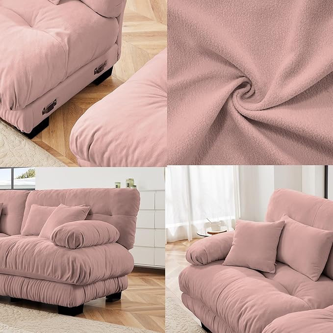 U Shaped Couch Sectional Couch, 3-Seater Cloud Couch Sectional Oversized Couch, Sofa Bed Couch with Round Bolster Armrests 5 Pillows, Modular Couch Home Sofa Living Room Couch(Pink)