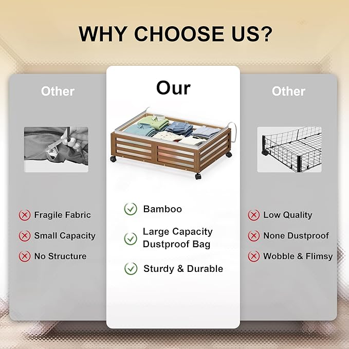 - 【Sturdy & Durable】Made from 100% natural bamboo; supports up to 120 lbs; includes a dust-proof bag for seasonal clothing and essentials