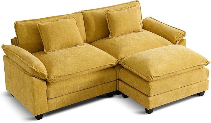 URRED Modular Sectional Sofa Comfy Cloud Couch, Modern Chenille Sofa Sleeper Deep Seat Couches with Ottoman/Pillows for Living Room (Yellow, 82.6''- L Shape)