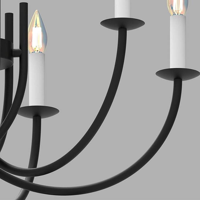 - 【Easy to Install】This round black chandelier uses the LED E12 lamp socket. After you open the package, you only need to assemble the dining room chandelier according to the installation manual, and then install the modern candle chandelier on the 110V ceiling.