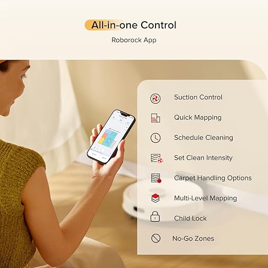 - Smart App & Voice Control: Through the Roborock app, you can easily set schedules, adjust suction, and set no-go zones and mopping levels, making smart home living truly accessible.