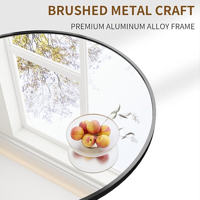 - Modern Brushed Frame Design: 48-inch black circle mirror is crafted of an aluminum alloy metal sleek frame, making it ideal for bathroom mirror, entrance mirror, vanity mirror, living room mirror