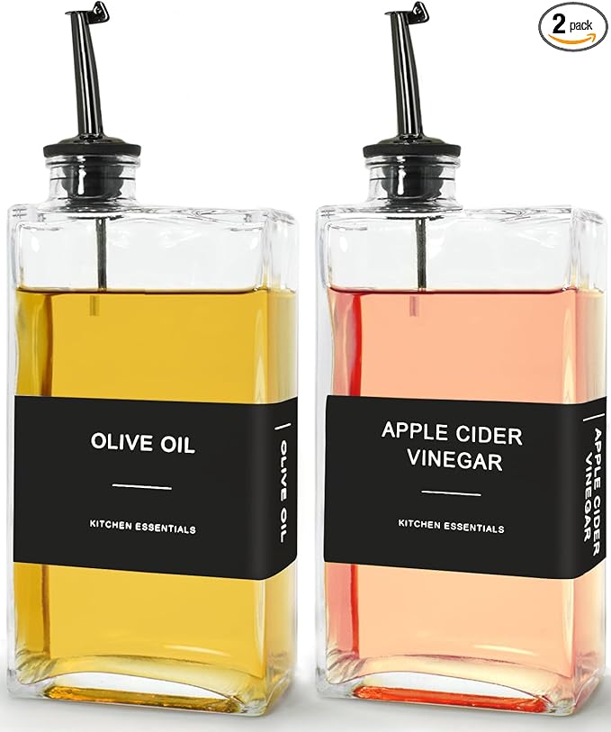 - Functional & Sustainable Glass Oil Dispenser: Made from food-grade glass, this olive oil and vinegar dispenser bottle set is designed for long-term use. This glass oil bottle enhances your decor and is perfect for an oil container kitchen or oil vinegar dispenser set. It’s a functional and beautiful aceiteras para cocina essential.