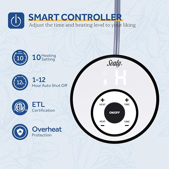 - 【10 HEATING LEVELS & 1-12 HOURS AUTO OFF】Sealy heating blanket twin have 10 heat levels and 1-12 hours auto shut off for customizable warm and energy efficient, using minimal energy while still providing effective warmth. Our electric blanket twin offers simple operation for a worry-free sleep in comforting warmth.