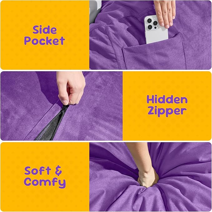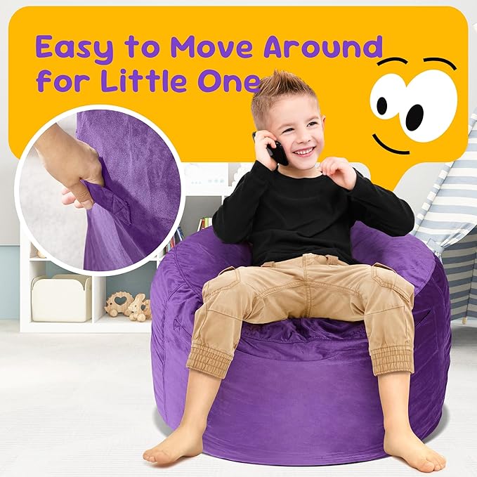 - Thoughtful Details: The bean bag chair comes with a carrying handle, making it easy for your little one to move it from room to room. Moreover, the small bean bag chair features a side pocket where your litte one can store their own belongings.