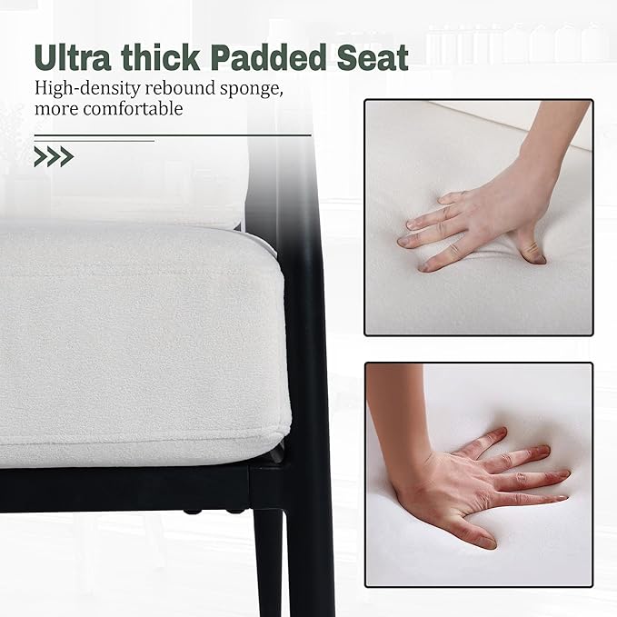 Modern Accent Chair for Living Room Bedroom Mid Century Arm Chair Upholstered Office Accent Chair Comfy Waiting Room Chair with Metal Frame, Cream White