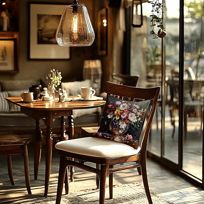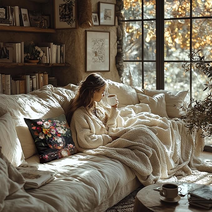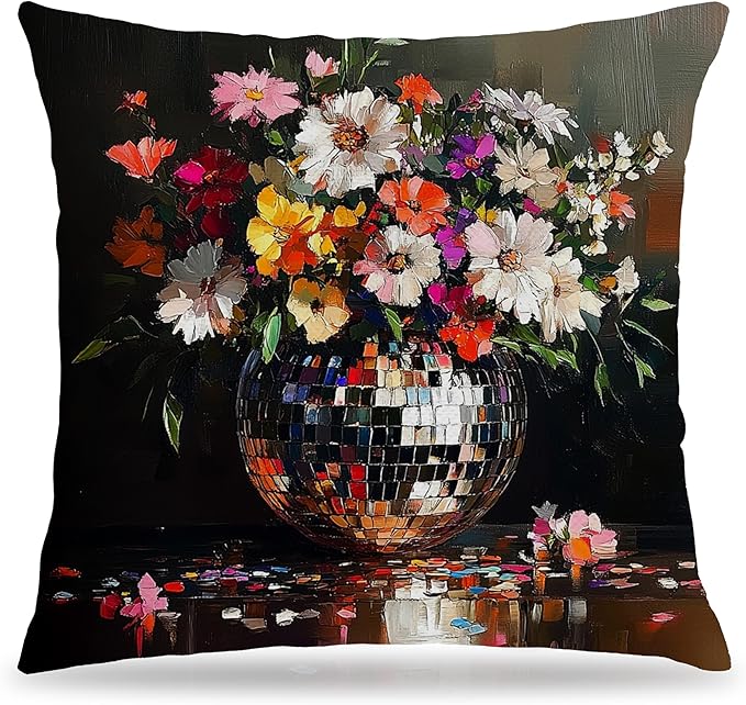 Trendy Eclectic Disco Ball Moody Floral Pillow Covers 18x18, Maximalist Funky Wildflowers Bouquet Throw Pillow Covers for Living Room Bedroom, Dark Cottagecore Decor, Eclectic Home Decor