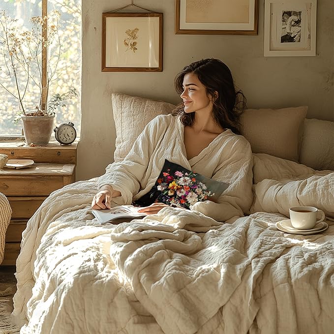 Retreat into comfort — luxurious bedding sets, quilts, and bath accessories that...