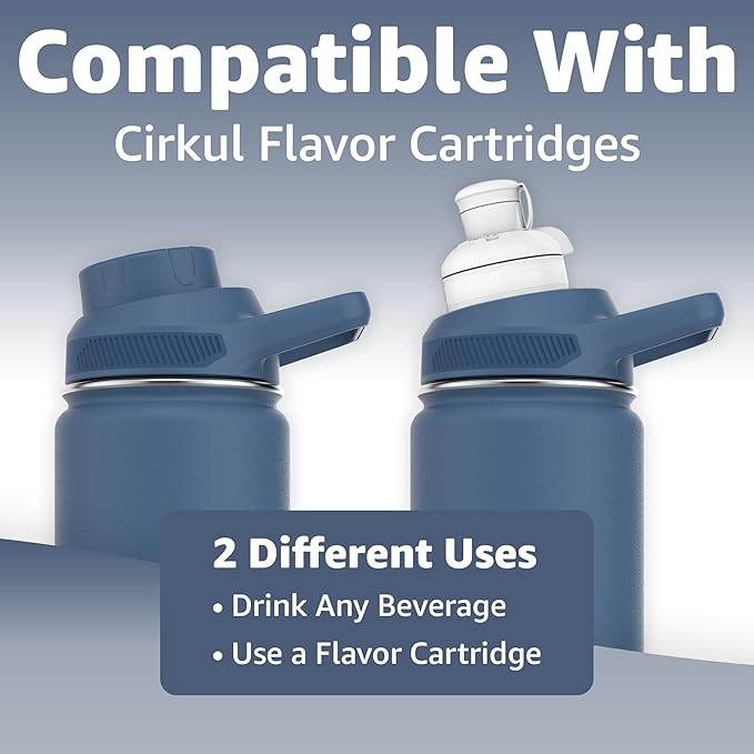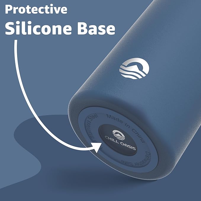 Chill Oasis Water Bottle | Compatible With Popular Flavor Cartridges | BPA Free, Leak Proof, Double-Walled Vacuum Insulated Stainless Steel, and Dishwasher Safe | Cold for 24 Hours (Navy, 22oz)