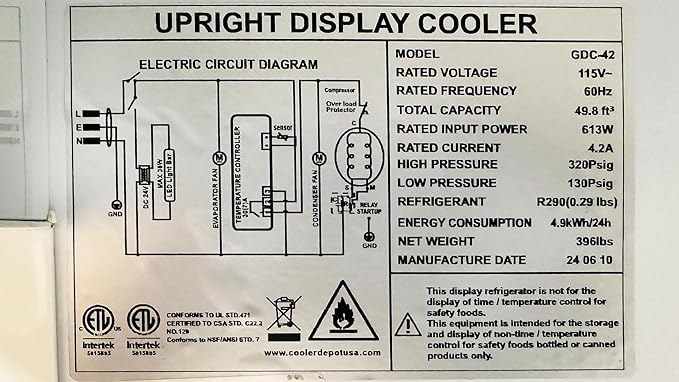 - TECHNICAL SPECS: Operates at 115V/60Hz with 613W rated input power, maintaining temperatures between 0°C~10°C (32°F-50°F) Note: our warranty does not cover all equipment used in food trucks, trailers, boats, residential addresses, islands, or built-in decorations.