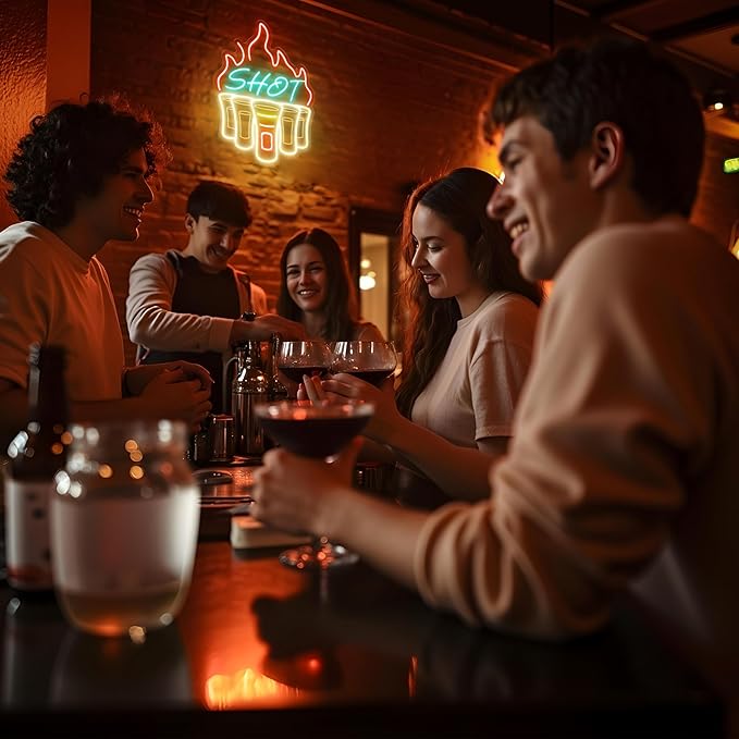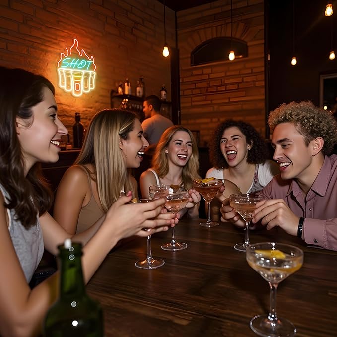 Shot Neon Sign, Bar Neon Signs for Wall Decor, Dimmable Acrylic Neon Lights for Home Bar Pub Club Bistro Man Cave Restaurant Party Decorations Gift