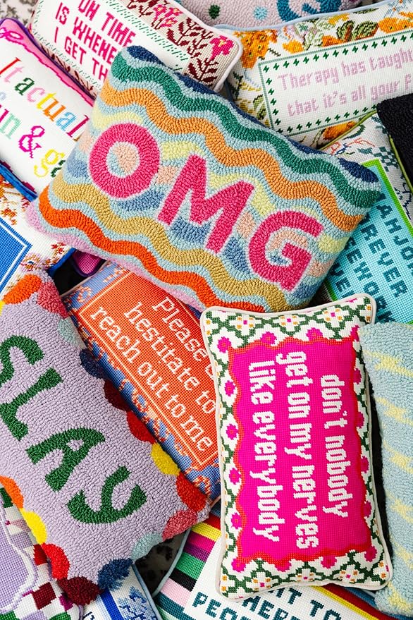 FURBISH Hook Decorative Throw Pillow - OMG - 12"x16" - Small Embroidered Designer Pillow for Living Room, Couch, Sofa, Chair & Bed - Eclectic Home Decor