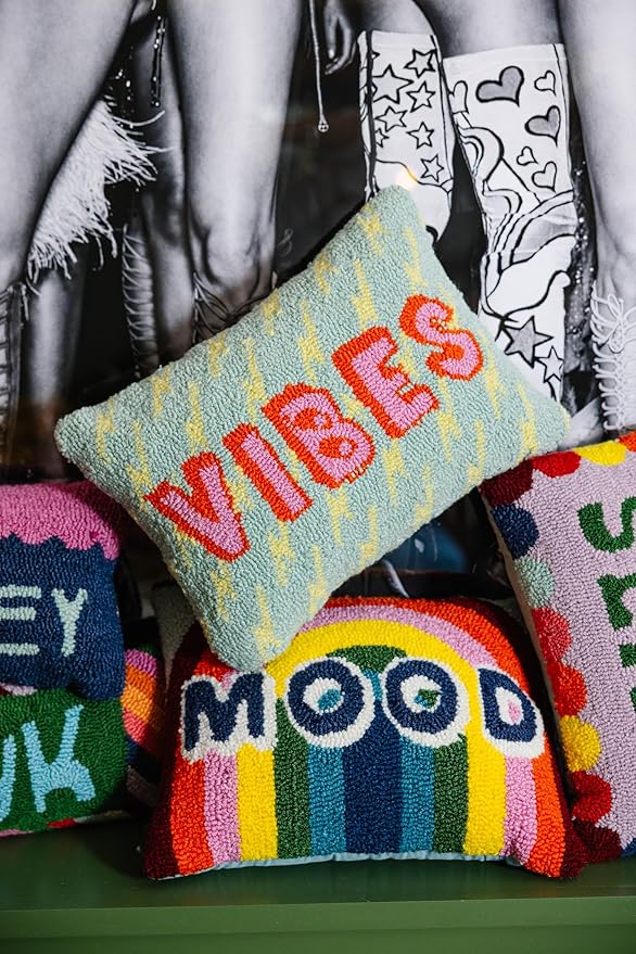 FURBISH Hook Decorative Throw Pillow - Vibes - 12"x 16" - Small Embroidered Designer Pillow for Living Room, Couch, Sofa, Chair & Bed - Eclectic Home Decor