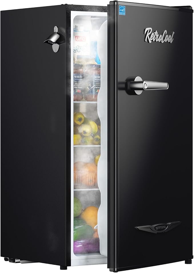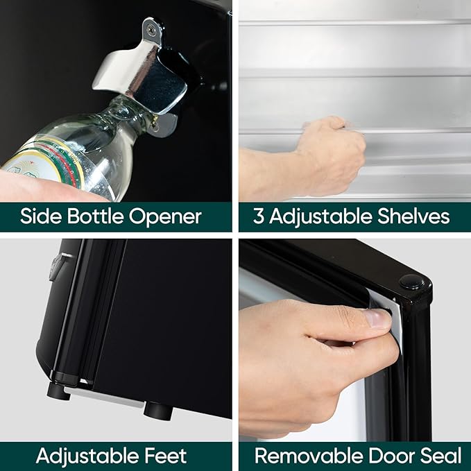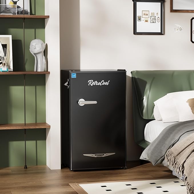 - Retro Design: Featuring a classic exterior with metal handle and side bottle opener, the overall appearance of this retro refrigerator is stylish and high texture. It's not only a practical appliance, but also elevates your home decor