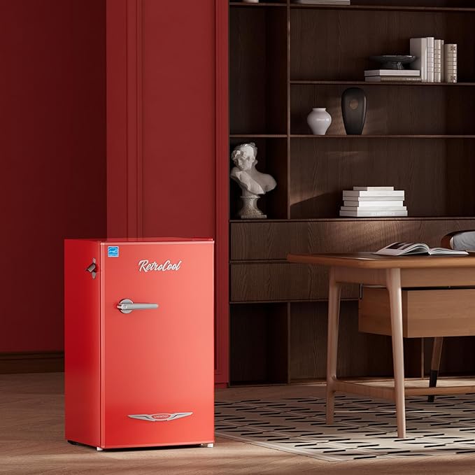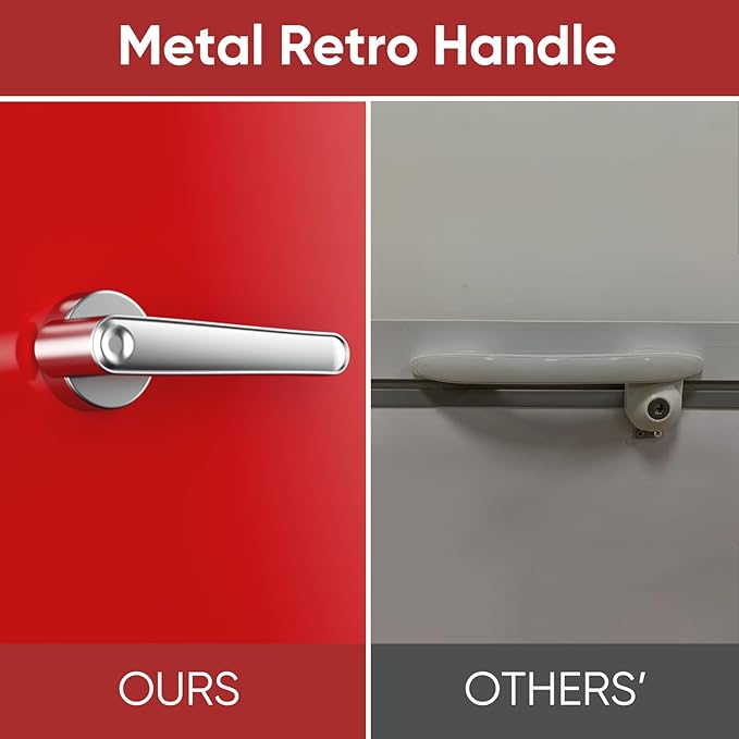 - Retro Design: Featuring a classic exterior with metal handle and side bottle opener, the overall appearance of this retro refrigerator is stylish and high texture. It's not only a practical appliance, but also elevates your home decor
