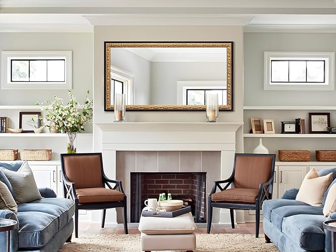 51.5”x28” Black Large Vintage Mirror, Ornate Baroque Decorative Mirror, Gold Foil Carvings Wooden Frame, Handmade Aging, for Dining Room, Fireplace, Bathroom and Bedroom