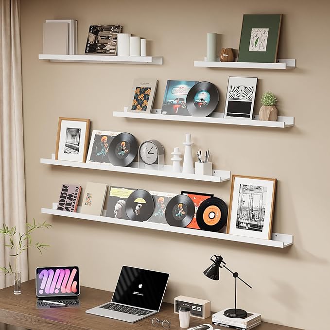 - Picture Ledge Shelves: The raised edge and a groove design prevents items from falling or slipping, offering a secure display space for your picture frames, small plants, photo frames, books, DVD or decorations on these wall storage shelves