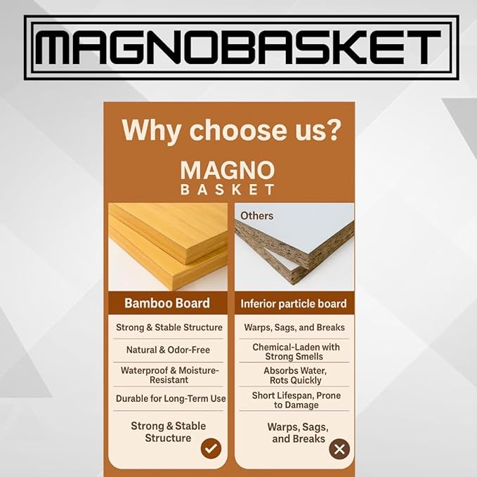 - ✅ Zero-Tool Setup – Installs Instantly, No Drilling Required Say goodbye to screws and complicated installation. Just unbox and attach the Magnobasket directly to any magnetic surface. The reinforced magnetic backing ensures it stays put, even in high-use areas like busy kitchens or laundry rooms.