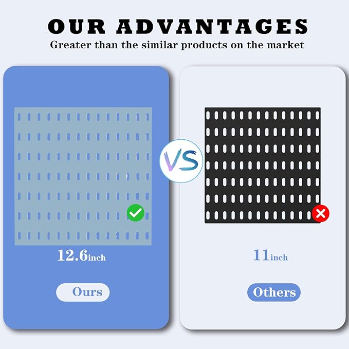 - Cost-Effective: This Pegboard Combination Kit is adjustable and removable. This new set is12.6"X12.6", bigger than the formal 11”X11”. The 20 accessories show more cost-effective than the formal 16 accessories