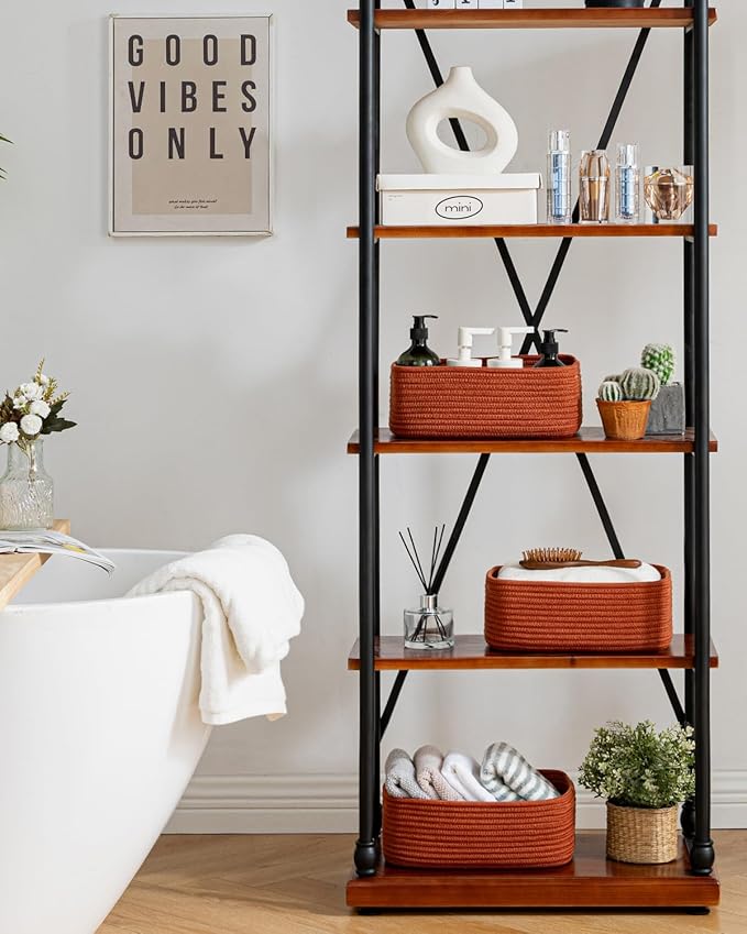 KALLAX Small Woven Basket, 12 x 8 x 4.5 Inches, Storage Basket for Organizing, Cute Small Rope Shelf Closet Cube Storage Bins Baskets for Shelves, Dog Toy Gift Baskets Empty, 3 Pack Rust Red