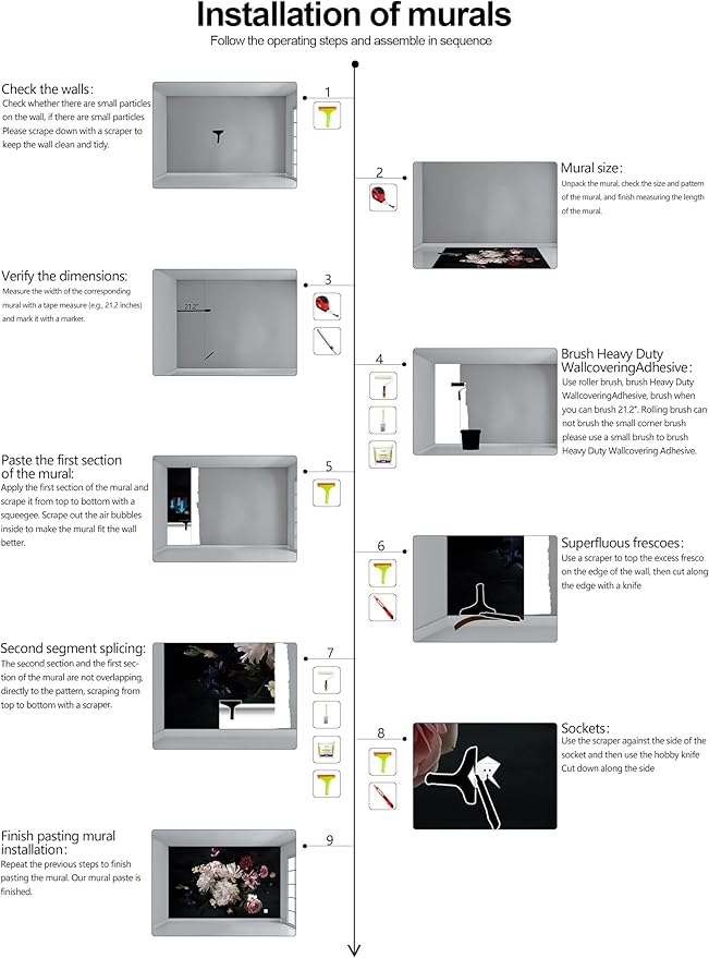 - Construction Installation: Each part of the mural is marked with a serial number underneath, no overlap, direct docking, in order. (Please refer to installation instructions)