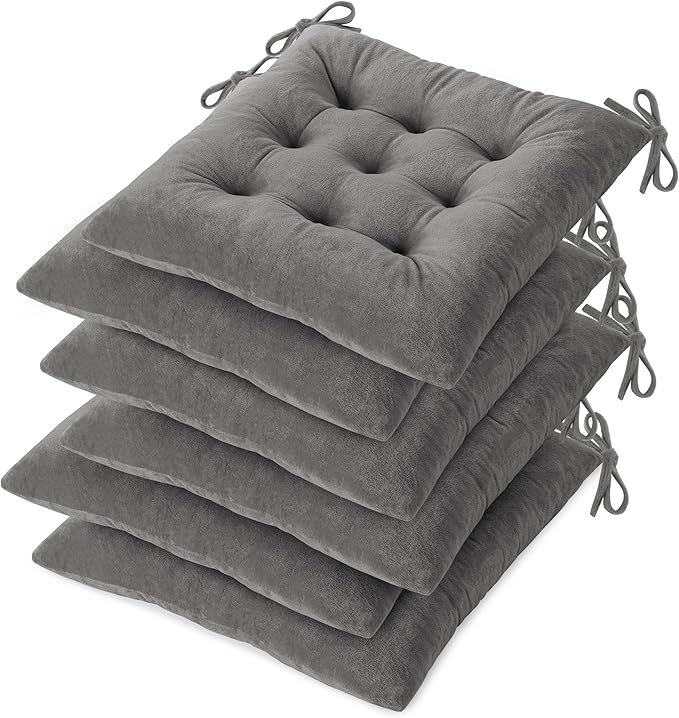 - Premium Fabric: Soft to the touch, gentle on the skin and highly resistant to pilling. This seat cushions for dining chairs is made from plush premium crystal velvet, which has a smooth and cosy texture. The interior is filled with a thick, 380g high resilience polyester fabric that resists deformation and shrinkage and retains its shape even after prolonged use.